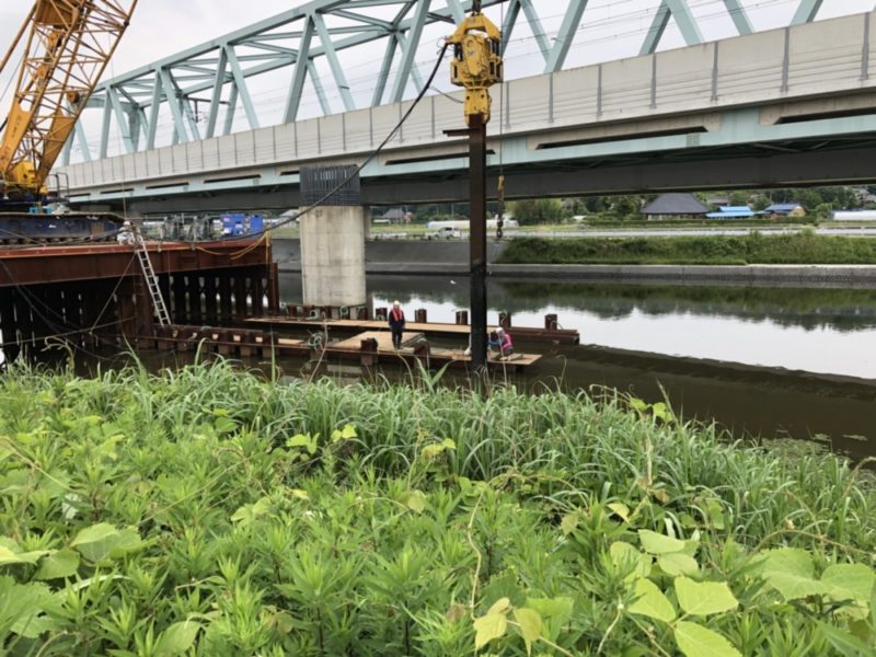 河川内ため池での施工(H鋼)